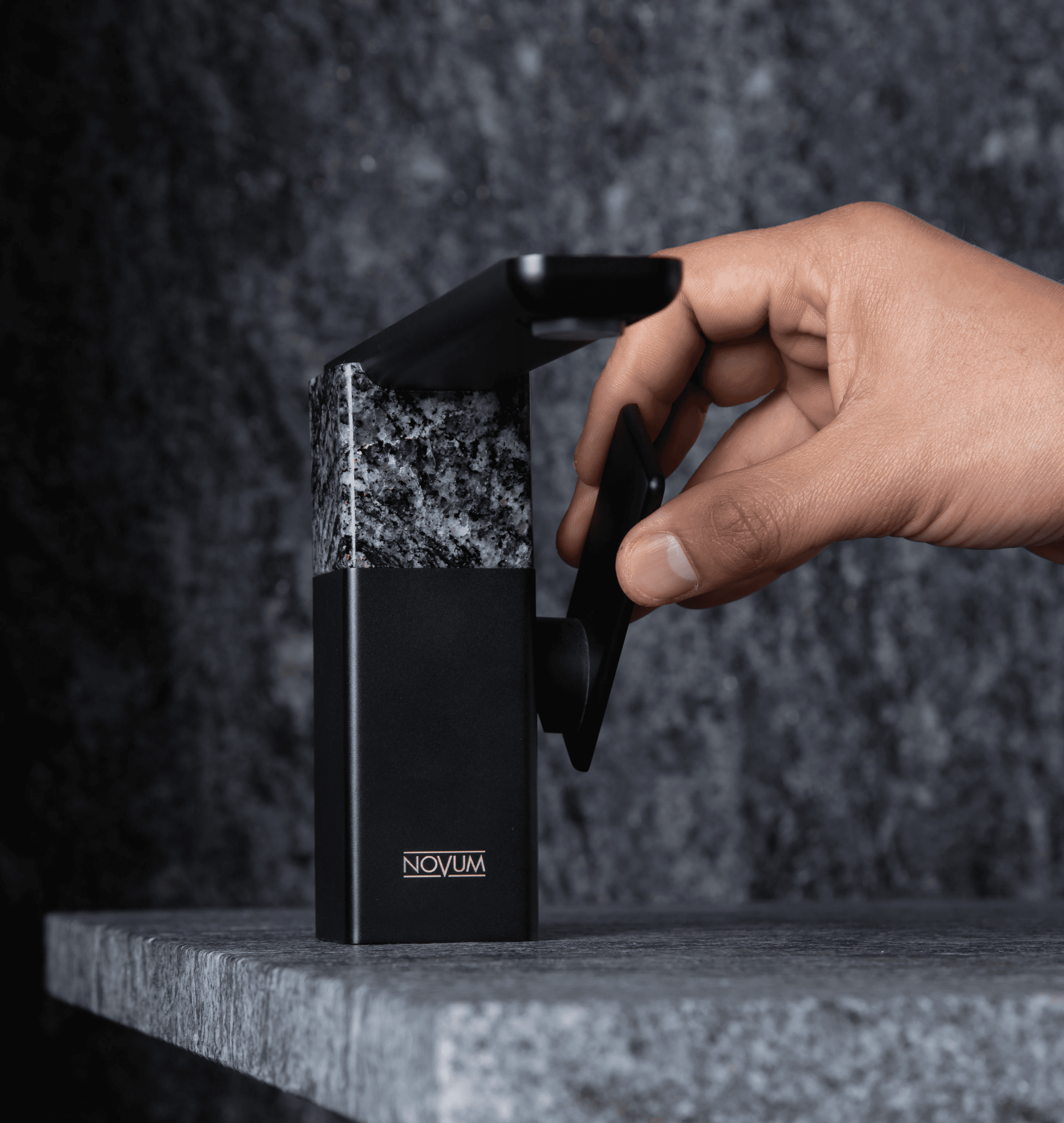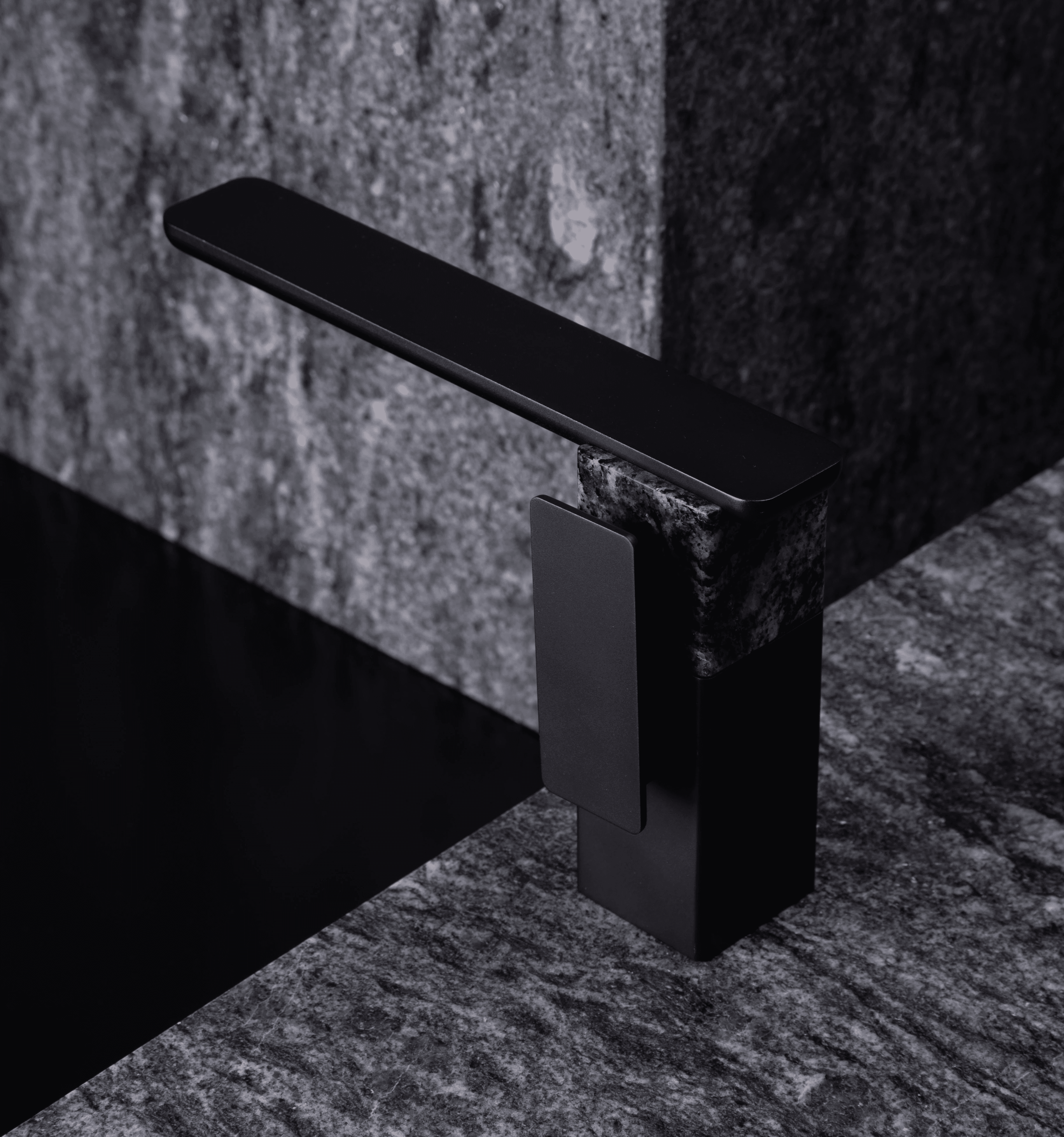 Hito allows a dialogue between an industrial process and materials, in this case being one of Mohaded´s accent stones, the boreal granite. It's a stone he's fascinated about because it looks as if it was alive, moving through its intertwining white and dark veins.