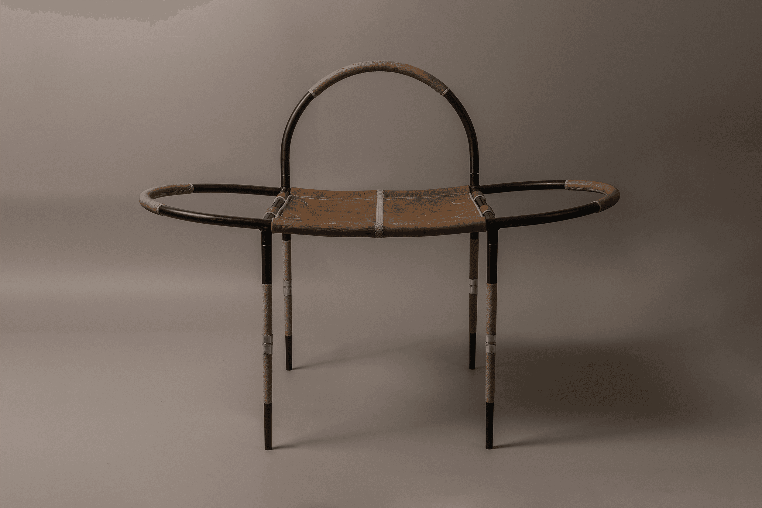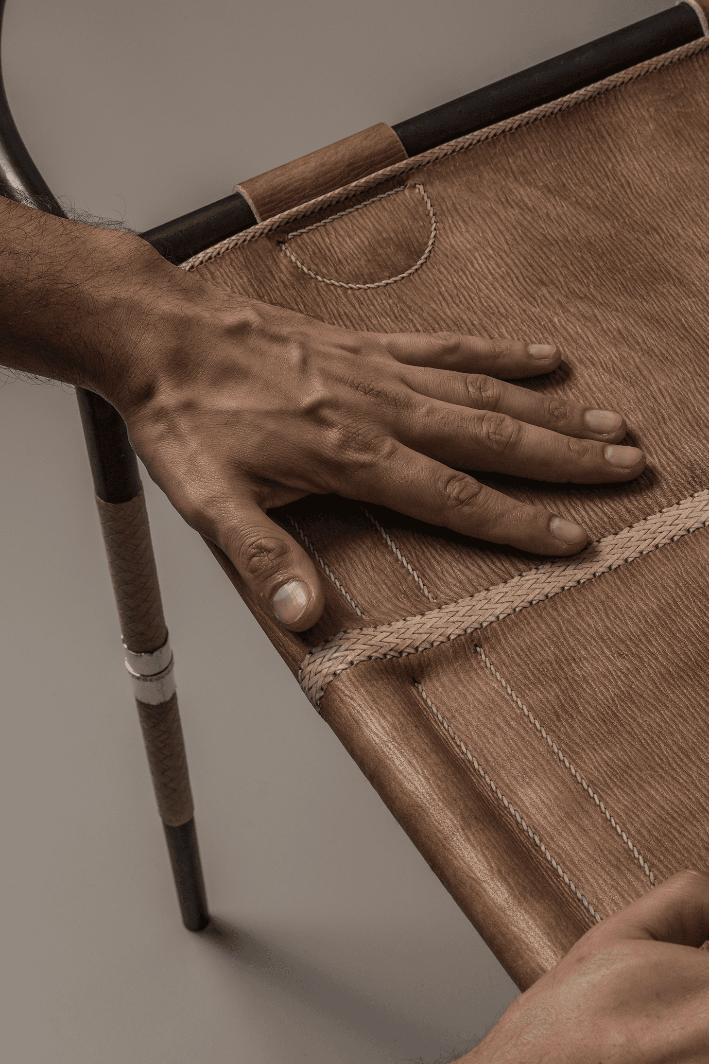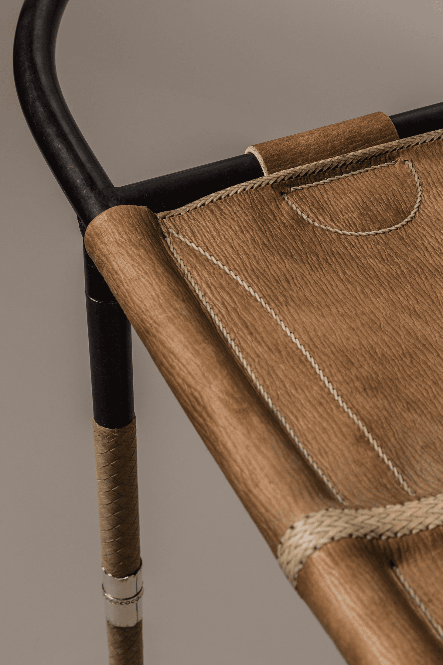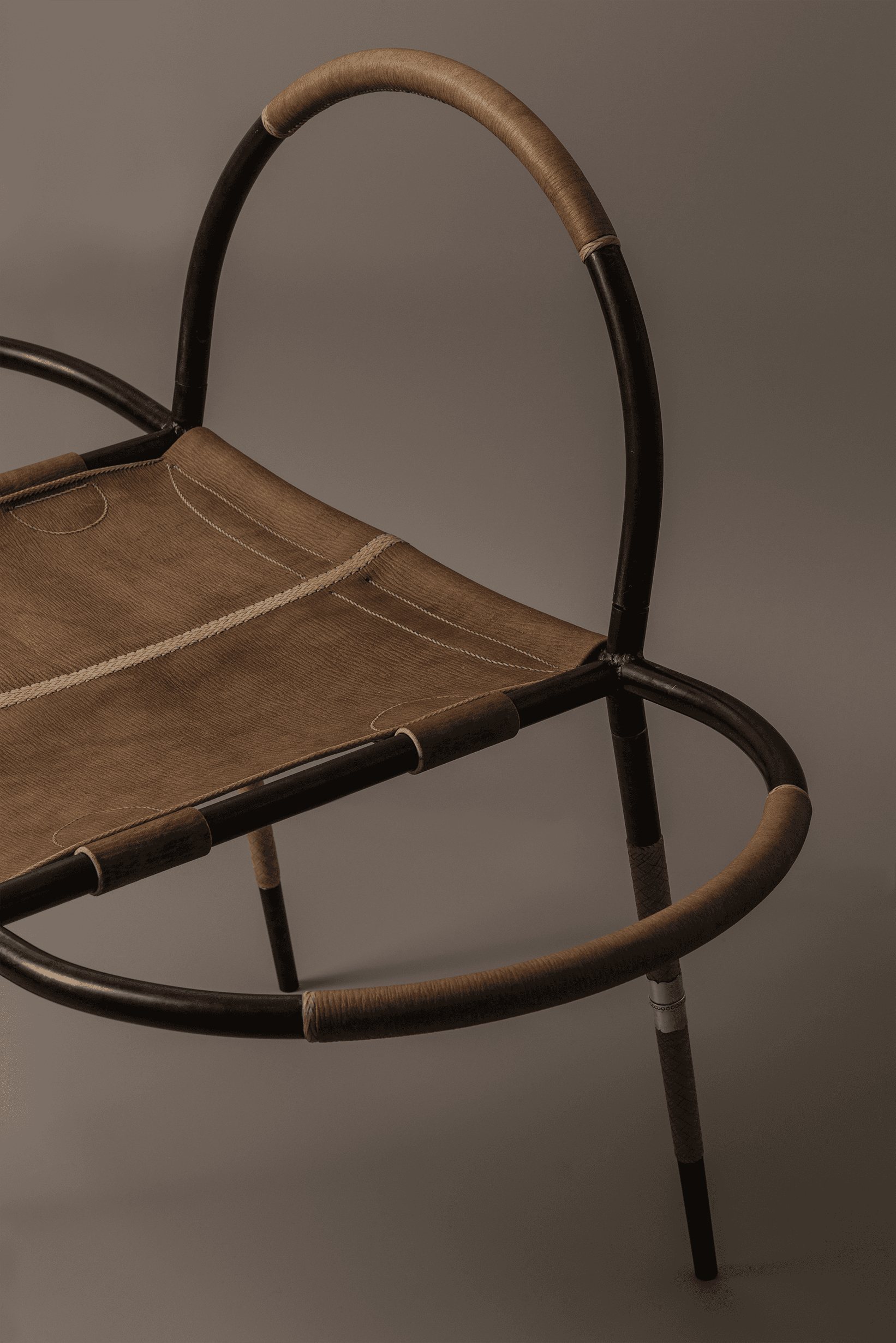 “Aro aro” is an introductory exclamation in traditional gaucho verses, an expression of the relationship between techniques, times, forms and the meter of dances and rhythms. Similarly, the Aro stool and chair articulate themselves meticulously while ceding to technique. Far from excessive, the criollo spirit reveals itself as strong, heavy, elemental and poetic.