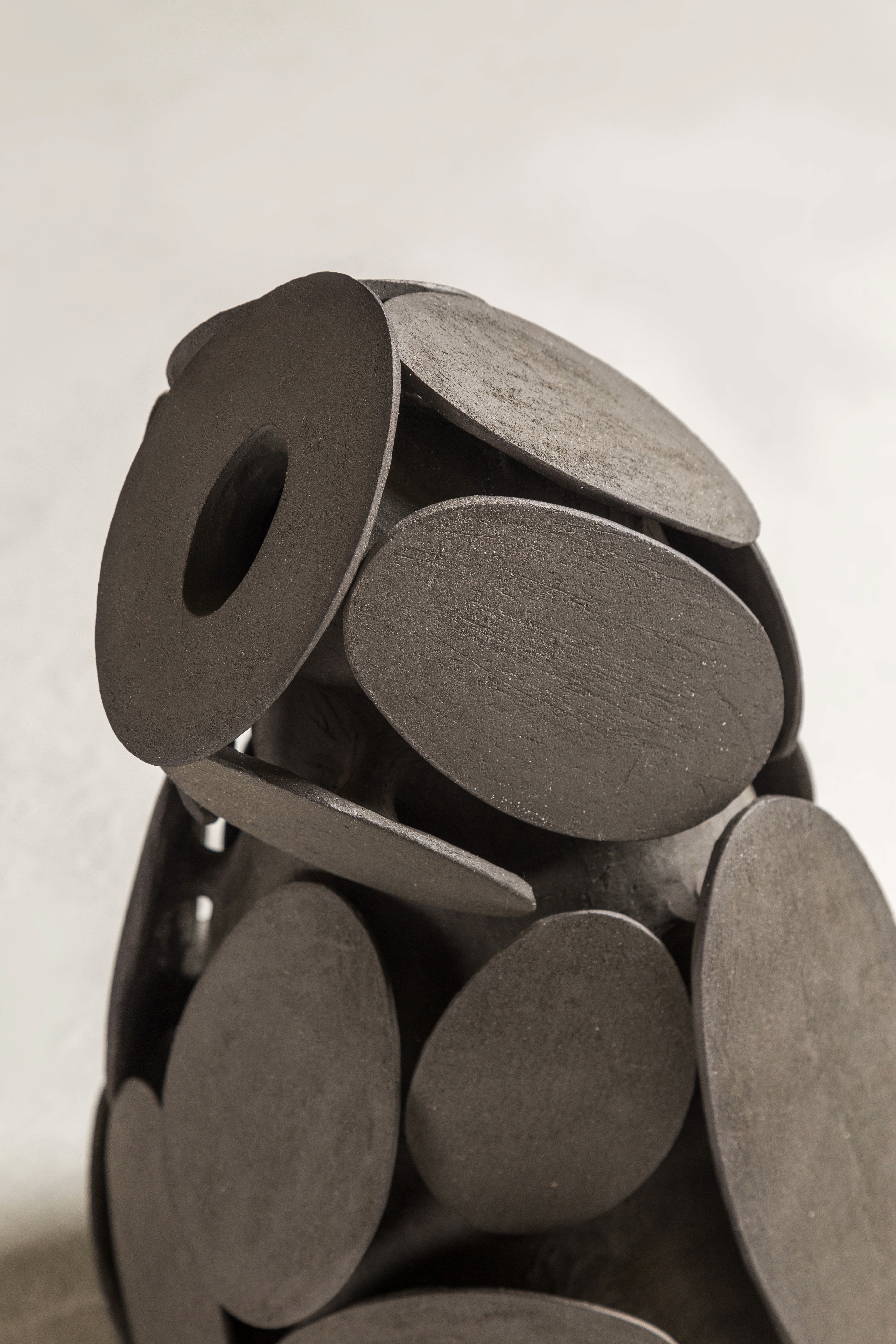The vase embodies in clay the effects of man’s hand, a print. This gesture leaves initials in the earth and exposes its malleability and concavity. An expression of sinking deeply into nature through forms that invite you to discover the resonances of an "inner journey" to the ancestral past but open to a future that is yet to come.