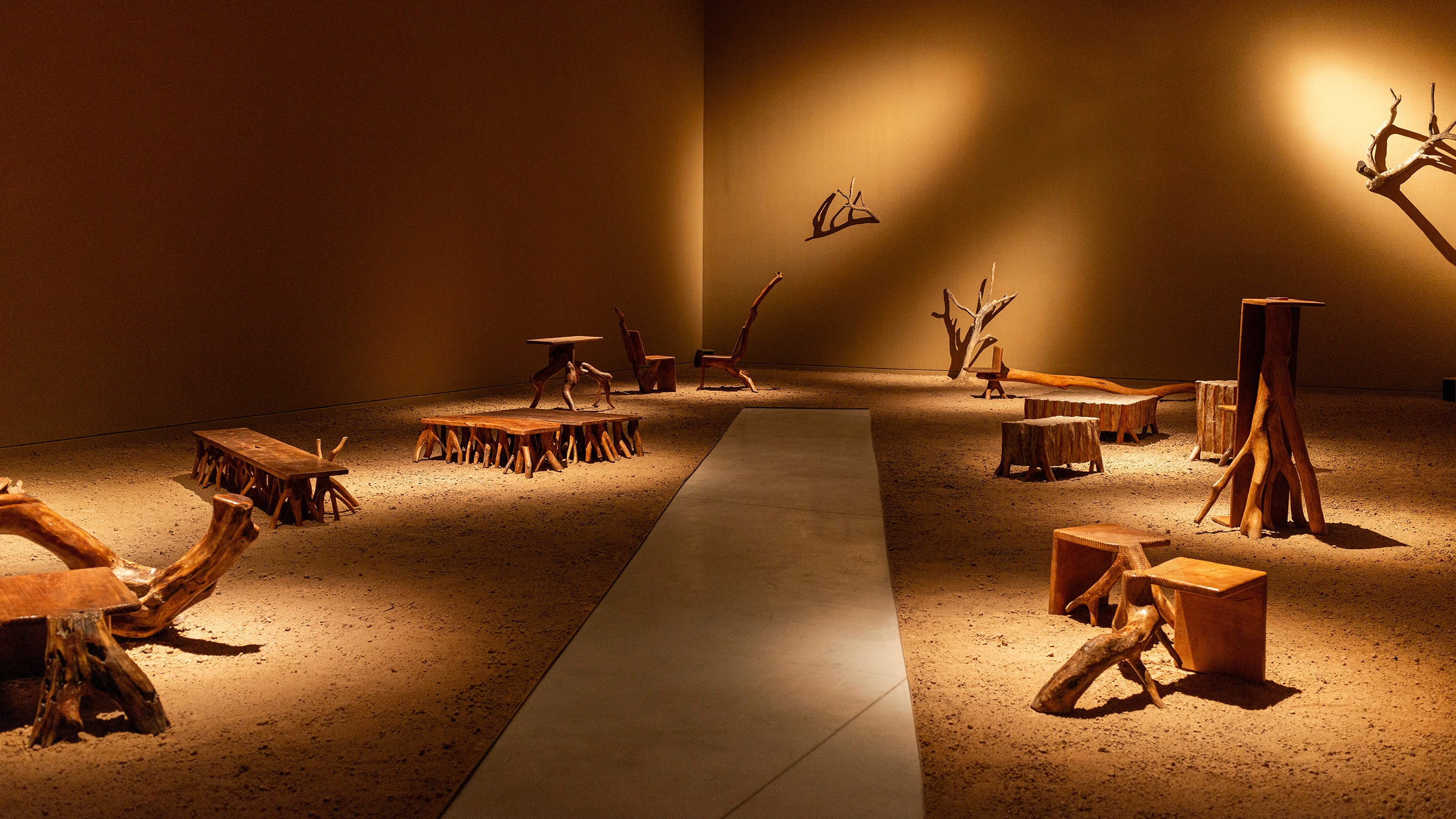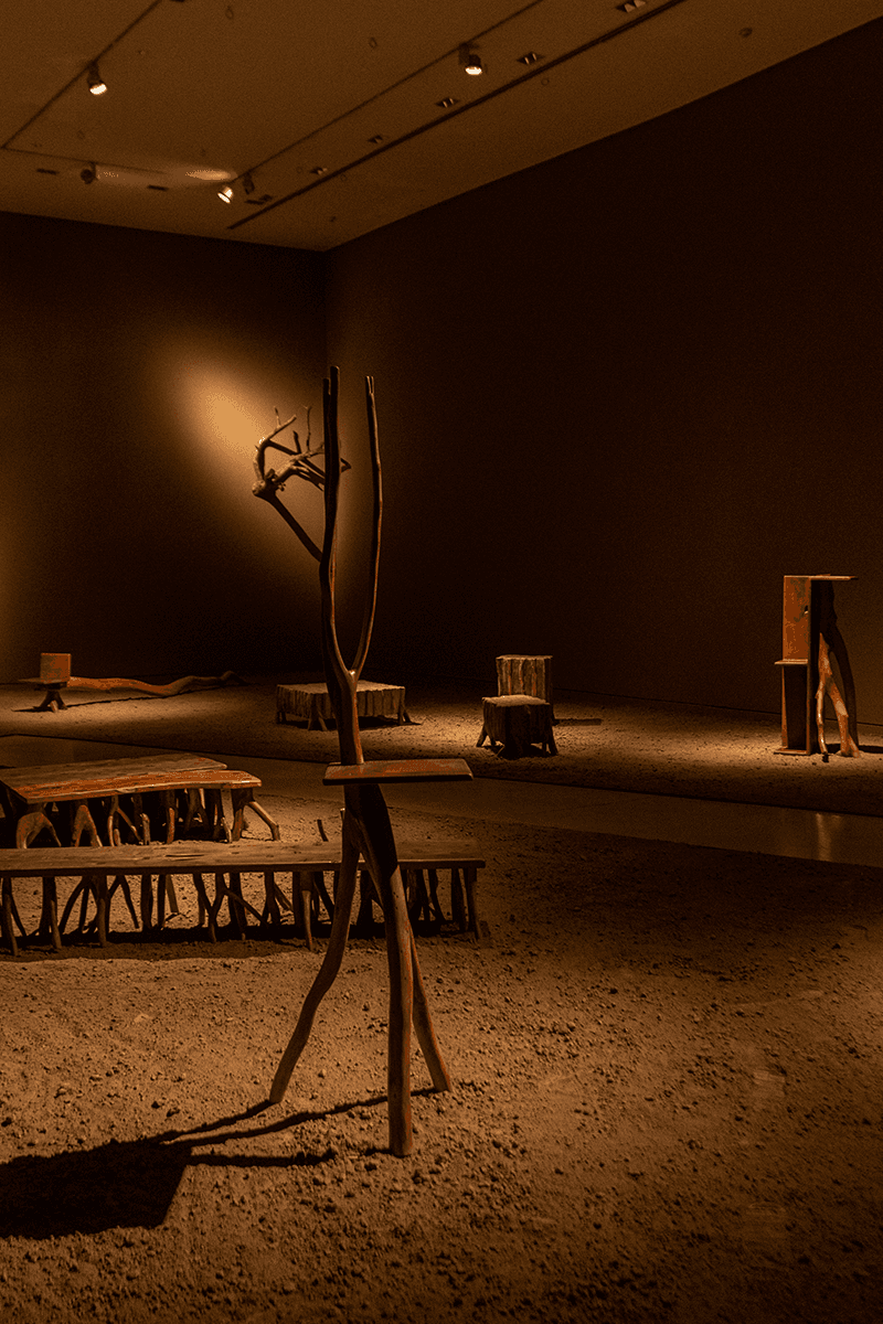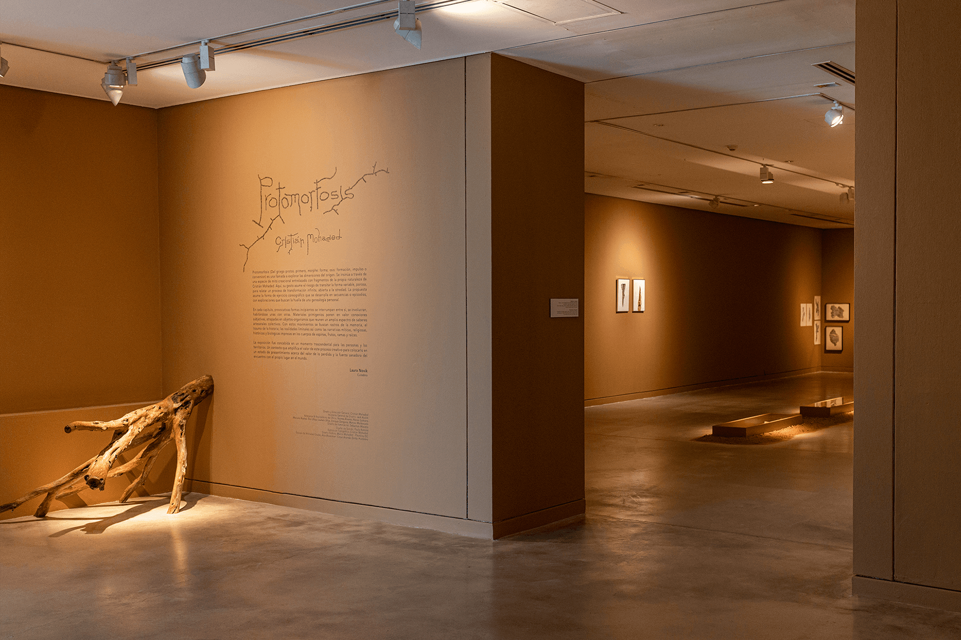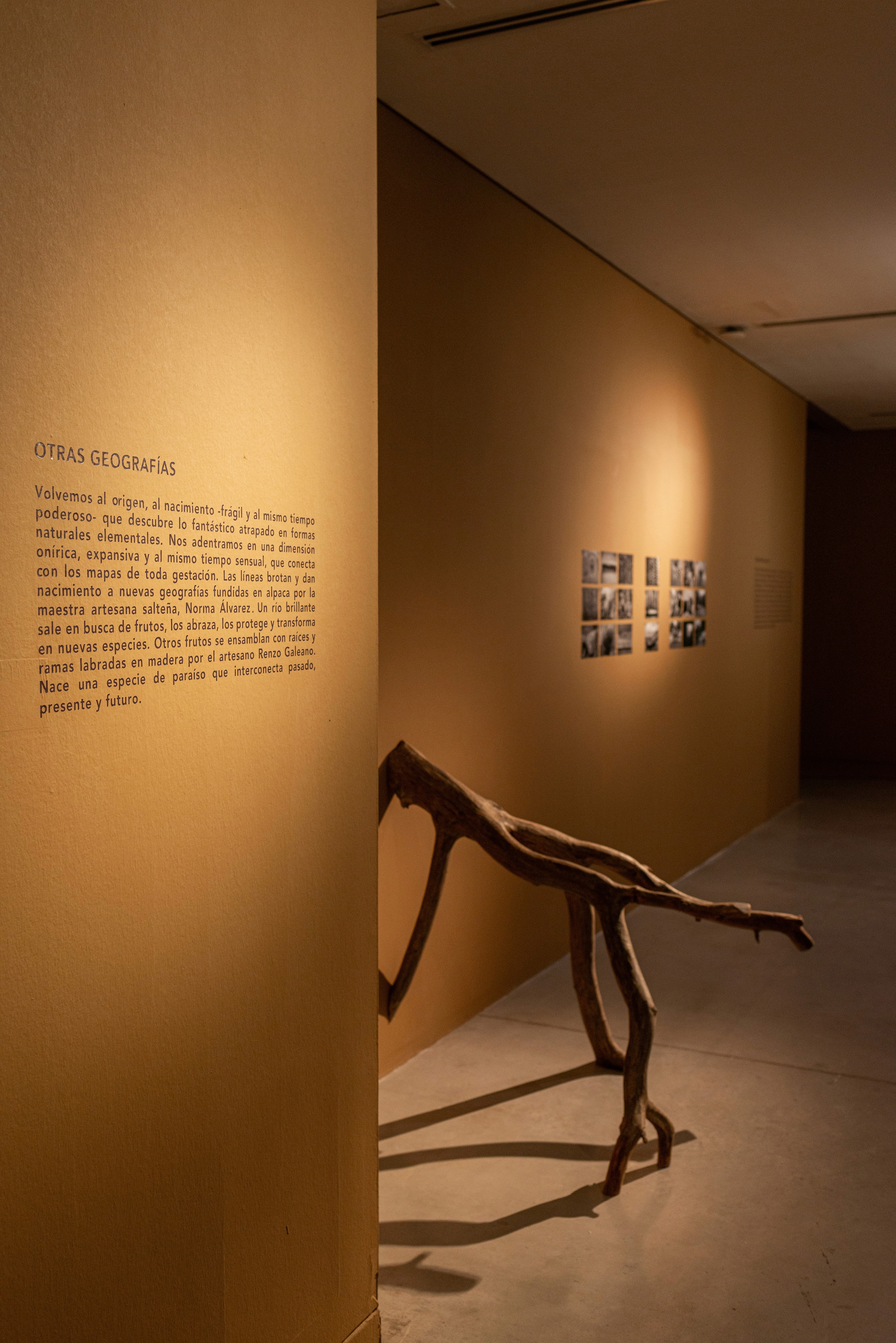 Through an introspective journey both within the self and across the territory, Mohaded discovers traces in memory, in liminal realities, and in mythical, religious, historical, and biological narratives imprinted upon the bodies of thorns, fruits, branches, and roots. These primal materials enhance subjective connections, encapsulated within the new species that embody a broad spectrum of artisanal knowledge, deftly shaped by the artisan masters Renzo Galeano and Norma Álvarez. The open and neutral space of the museum is invaded by provocative species with incipient forms which interrupt each other, engage and cohabit with one another. They are protagonists of a choreographic exercise with sequences that guide