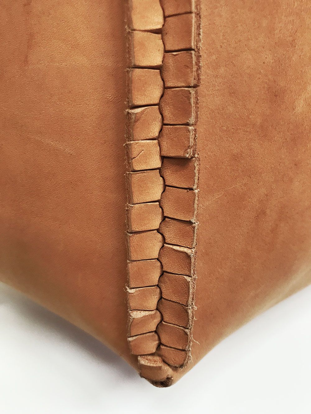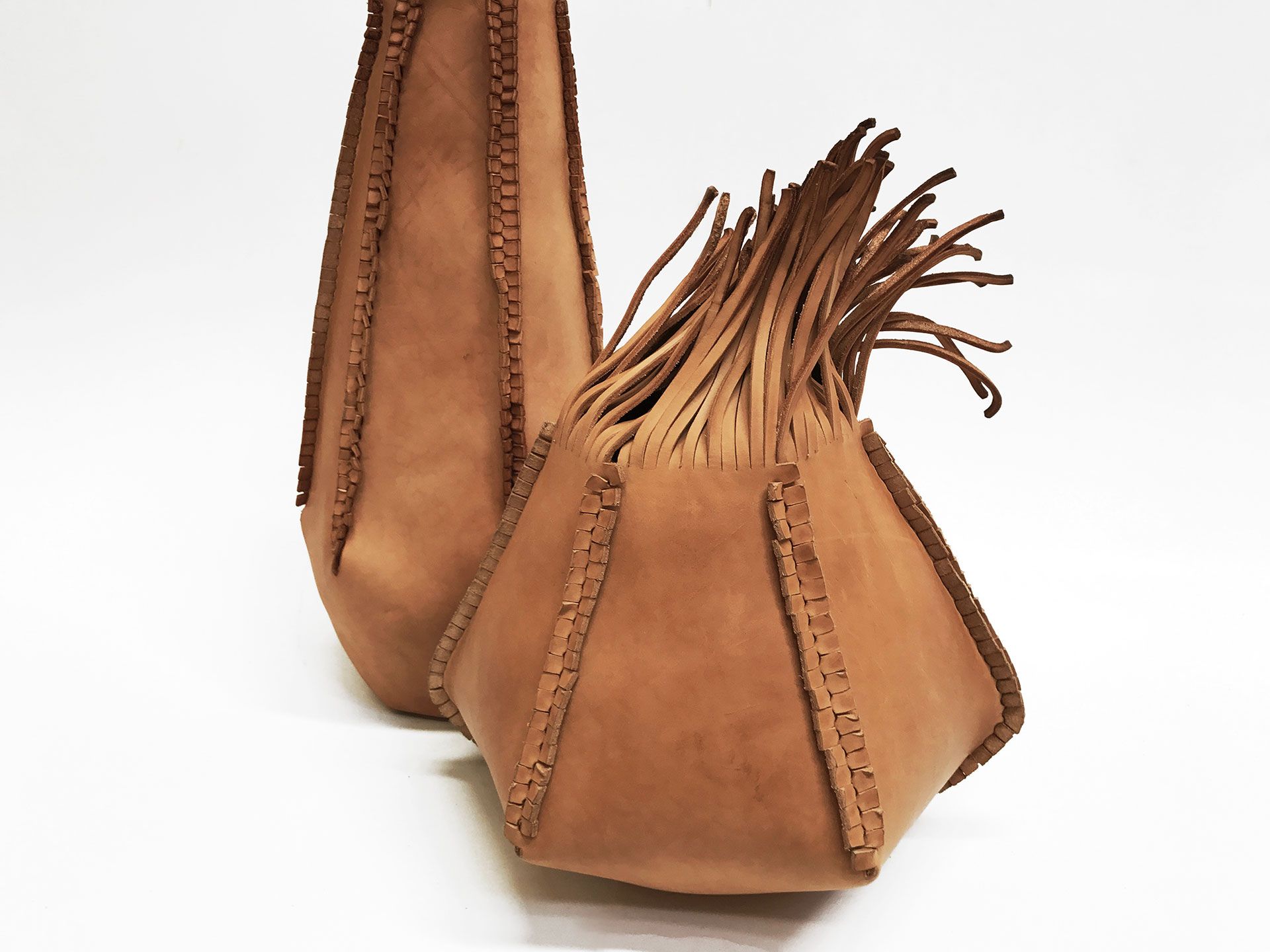 Collection of containers made entirely of natural leather, which seek to externalize the strength and identity of a territorial material, with history, past and future, where traditional techniques and languages used by the gaucho are intertwined, claiming old sewing techniques , modeling and construction, without the need for threads or glues, which were used to assemble or overlap leather sheets (commonly called embossed seams in criollo traditions). In its upper part, I worked with the natural movement of the leather after submitting it to a process of boiling in water. An object that combines contemporary forms and the challenge of revisiting these artisan techniques and forgetting them.