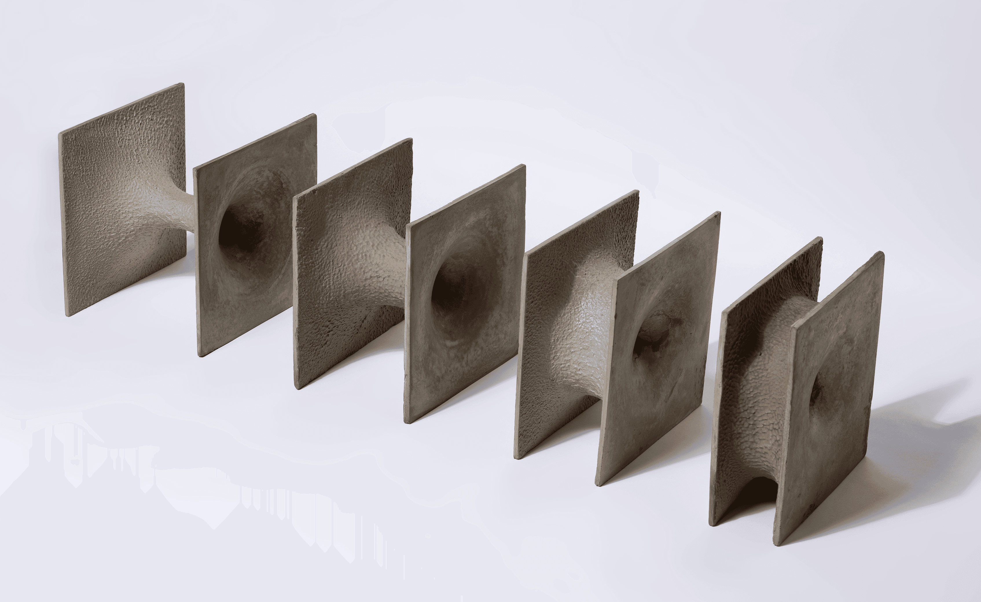 “Objetos embrionarios”, presents a synthesis of this dialogue between the maker and the material, with form as language and the essence of the material as the dominant element.